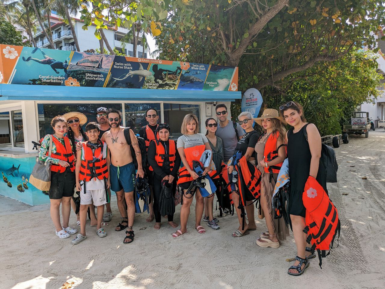 تور دریایی یک روز کامل حدودا از ساعت ۷ صبح الی ۱۸:۰۰ با امکان دیدن دلفین ها، شنا در کنار کوسه های پرستار ، بازدید جزیره زیبای محلی fulidhoo و غذا دادن به سفره ماهی ها در ساحل، بازدید از کشتی غرق شده و اسنورکلینگ اطراف آن و عکاسی با دوچرخه زیر آب. نهار پیک نیک روی یک sand bank خیلی زیبا وسط اقیانوس.